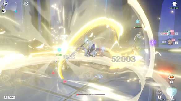 优菈的输出循环给我更多的感觉是“笨重”。80充能需求,位移技能的缺乏,乏善可陈的大招杀伤半径都让她很难将其输出有效地倾泻到多个分散敌人或移速较快的敌人身上,也很难在爆发期在对总输出影响较小的情况下转移目标。