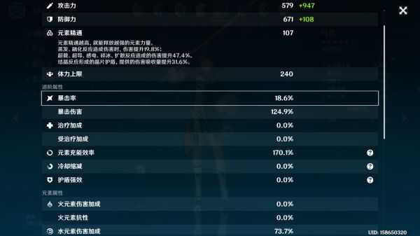 香菱6命,武器四精匣里,天赋2,9,11,精通很高,没有暴击头。
