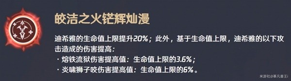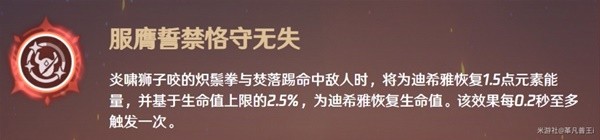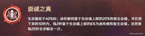 因为迪希雅需要承担前台角色的伤害,所以经常导致迪希雅的血线处于不健康状态,这个天赋作用还可以。