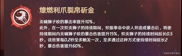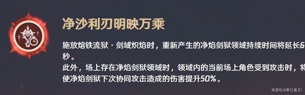 站场输出类型的天赋。需要注意的是,点了q不能傻傻的等着,而是仍然要普通攻击或者e进行输出。这里普通攻击/e的情况下伤害并非会视为普通攻击/e伤害,而且由于动作改变,所以也不会触发行秋/夜兰的水剑。不过是可以吃的到绝缘四件套的加成的。