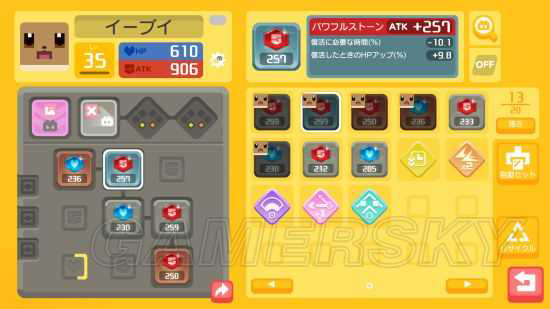 在提升到一定的等级(36等)过后,大力石(パワフルストーン)的数量大于铁打石(タフネスストーン)的话⇒火精灵,大力石的数量少于铁打石的话⇒水精灵,大力石的数量等于铁打石的话⇒雷精灵。