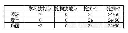 观测结果发现,学习技能为7、0、-3的三个小人,每人挖掘24块砂石后挖掘技能同时升到1,又挖掘50块砂石后挖掘技能同时升到2,结果显而易见。学习技能增加的究竟是什么速度,我还没想到测试方法,有兴趣的可以研究一下。