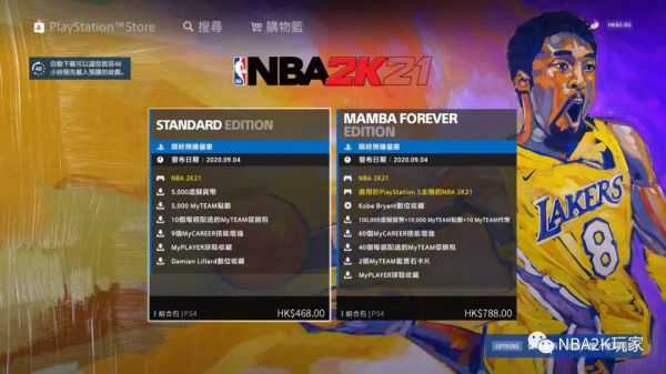 对于PS4/XBOX玩家来说,版本选择上,对于常玩的朋友个人建议典藏版(两版赠送内容如上图),目前2K21在PS港服上的售价(普通版468港币,曼巴版788港币),除了多出的部分数字内容之外,还可以免费在PS5/XBOX X上使用次世代版,怎么想也不亏,而且虽然现在不一定想买次世代主机,万一呢?