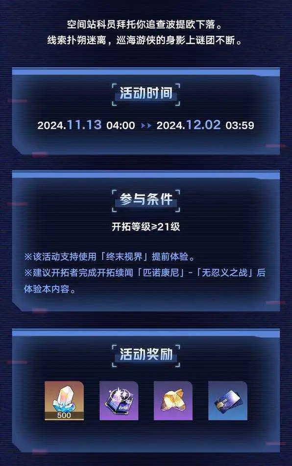 《崩坏星穹铁道》游侠谜影活动即将开启,那么该活动的奖励和玩法是怎样的呢,下面请看官方带来的《崩坏星穹铁道》游侠谜影活动介绍,希望能够帮助大家。