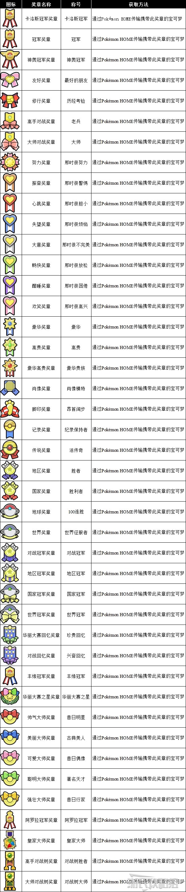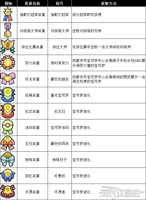 ※一些表现性格、天气的奖章可以通过【在特定天气下捕捉宝可梦】或【捕捉特定性格的宝可梦】获得;露营时做完咖喱再捕捉宝可梦也会有几率获得喜爱咖喱的奖章。