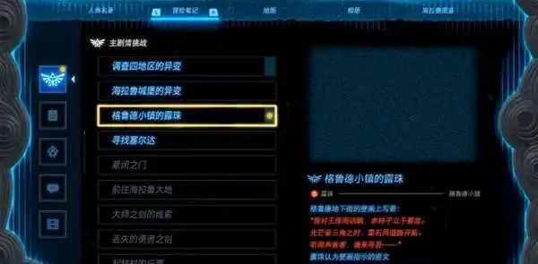 《塞尔达传说王国之泪》格鲁德小镇的露珠任务需要触发壁画后前往各个地点进行解谜完成,下面请看玩家“_connlost”带来的《塞尔达传说王国之泪》格鲁德小镇的露珠任务视频攻略,希望能帮助到大家。