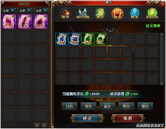 在“碎灵”界面也可指定灵符品质进行批量碎灵: