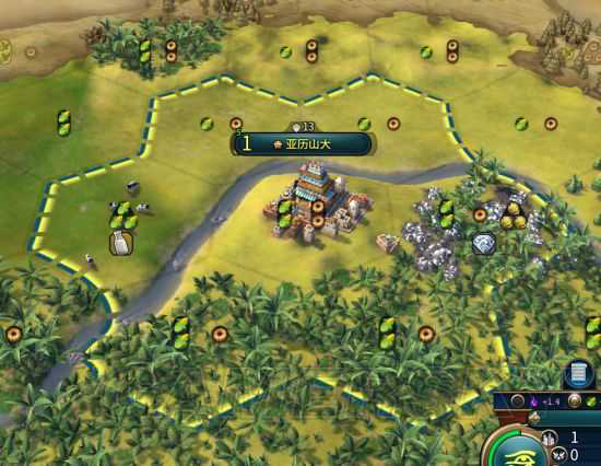 平原丘陵的加成原本是 1粮+2锤,坐城后不够2粮的部分补足,变成2粮2锤。其实所有的优势也就是这一个锤子,即便是原本什么都没有的沙漠,坐出来也是2粮+1锤。但这一个锤子,前期就是差1、2个回合。