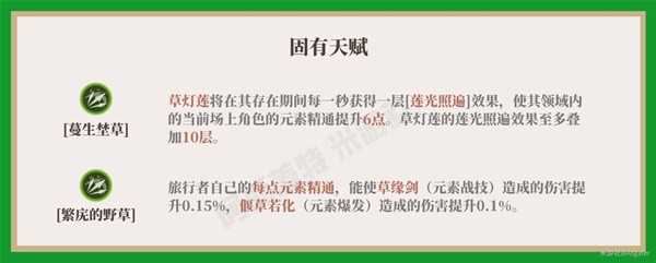 ③.每次释放战技命中敌人后会产生3颗草元素微粒