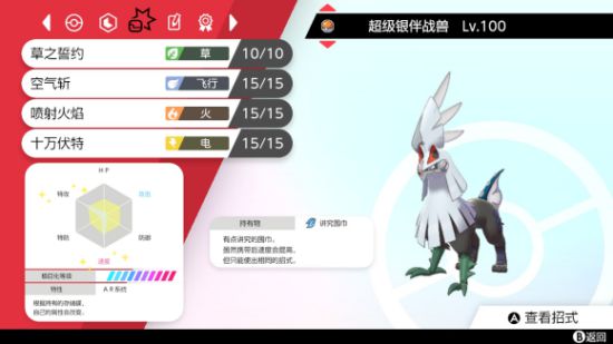 在八代的图鉴内,除去御三家,还存在有一只会誓言的宝可梦,他的技能池非常丰富,打法非常多样,这也就意味着对手难以猜到他的配置。以他作为我们誓言队伍的选出,多了一份出其不意,真是再好不过。他就是这个队伍的主角之一,银伴战兽。