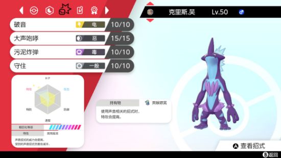 本身75速度比较尴尬,勉强可以拉进顺风队伍里。技能的选择上,双本盲点不少,遇上环境热门地鼠、重暴都得吃瘪,所以输出环境还是有点艰难。但从另一个角度来说,在不遇到地、钢这类克星的时候,他都能有还不错的发挥,尤其是对上飞机、仙布的时候。得益于特性声音类技能伤害减半,再加上毒电的属性,可以说是仙布的天敌了。飞机更是尴尬,双本打不动,看我嘛对破音也完全没有效果。