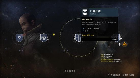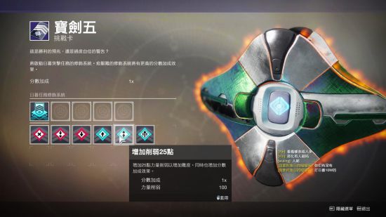 第二个碎片,首先去异域商人(九爷)那边,购买宝剑五调分卡,在里面调整能量阻碍(力量削弱)至100。然后来到日落突击任务(最右侧),用火箭筒击杀60个即可。