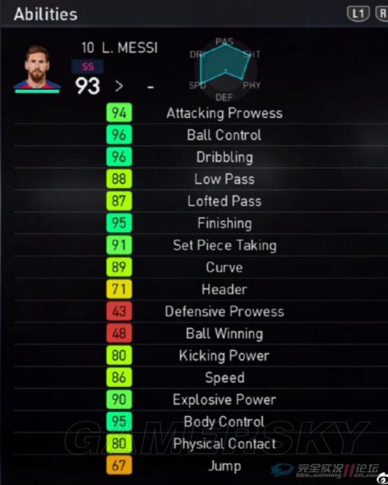 《实况足球2018(PES2018)》梅西的总评高达93分,球场位置也变成了影锋(SS),那么具体的数据是什么样的呢?一起来看看《实况足球2018》梅西详细数据一览吧!