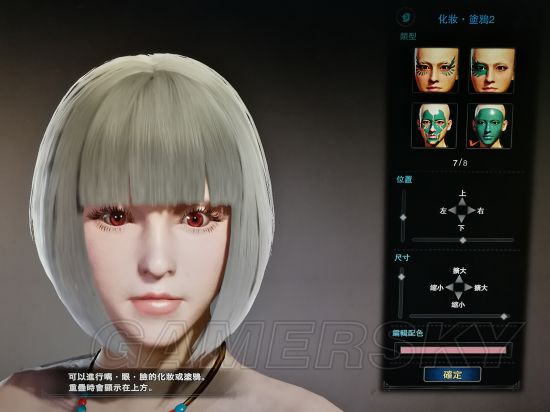 选这个覆盖整张脸的化妆,适当扩大大小(太大的话分界线在脖子上)然后调整颜色。