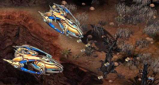 如果你的对手是虫族,别忘了用你多余的资源开2矿,造光子加农炮。当你的2架航母出门的时候,狂热者和哨兵留守基地(哨兵是用来放力场抵住早期Rush和拖延时间)。