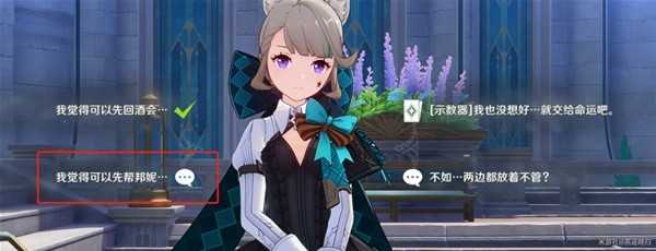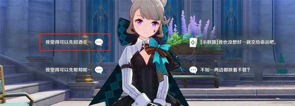前面的剧情直接跳过,到这个对话框后,我们选择:我觉得可以先回酒会…;