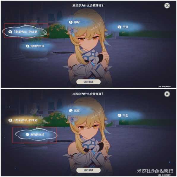 1)白淞镇的线索:解读【勒菲弗尔】:与【宠物的交接】联想:解读并提交;