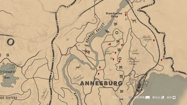 地图左边下角那3个点把附近药草都扫了,这3个点起码得有6到8处有茶藨子,一处大概2到3株。因为标点好像有限制数量,所以没法全部标出。五角星哪里起码把半岛全扫了。这3个点全扫完还能拿到雀子兰,在NO这2个字母下边3个标点,也有几株雀之蓝。这3个点还有至少6株左右的人参。其他药材无数。白天扫到黑夜,越扫越兴奋。恐怖的音乐都不能阻止我了。