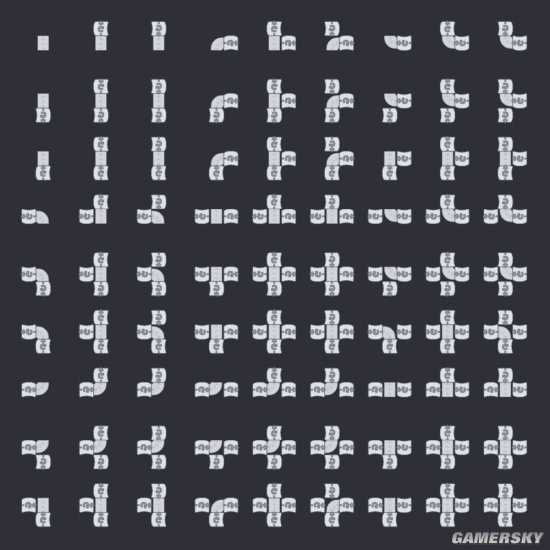 一条传送带可以连接到4个相邻的设备的所有81种方式