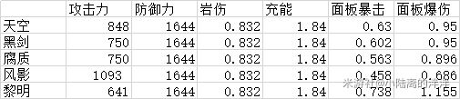 4、非双岩队阿贝多充能通常不够,因此约定,不管什么武器,都将阿贝多的充能堆到180左右(后续分析以184%为准)。