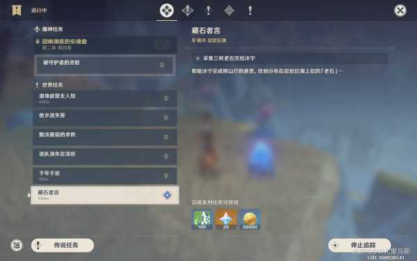 《原神》的藏石者言任务需要玩家寻找分布在层岩巨渊的老石,提交后变化能获得原石奖励。下面请看由“W尤里乌斯”带来的《原神》藏石者言世界任务教程,一起来看看吧。