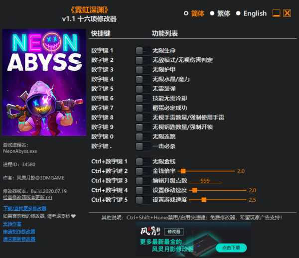 《霓虹深渊》的玩家制作出了霓虹深渊16项修改器,那么修改器都有什么功能呢?下面为大家带来“风灵月影”分享的《霓虹深渊》修改器使用方法说明 修改器怎么用,一起来看看吧。