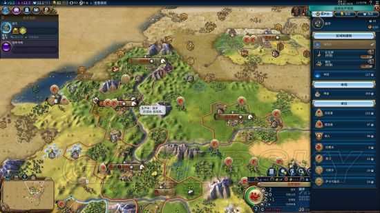 32T政策和骑马同时好了,然而我发现+100%的政策对UU是无效的,而首都只有一匹马造不了骑手。所以读档换回了50%的政策。这时候运气非常好猴子在外面捡了个妹子回来,所以之后马上卖了点兵买了一个移民,跟工人一起去圈第二张图左下方那个马。