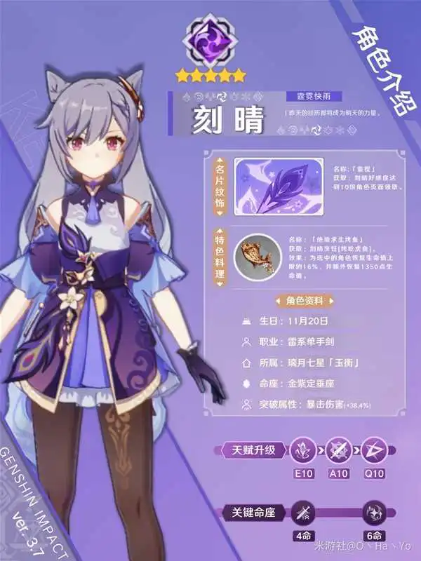 《原神》中的刻晴是一名五星雷属性角色,那么在3.7版本下要怎么培养呢?请看下面由“O丶Ha丶Yo”带来的《原神》3.7版刻晴出装与阵容搭配推荐,希望对大家有用。