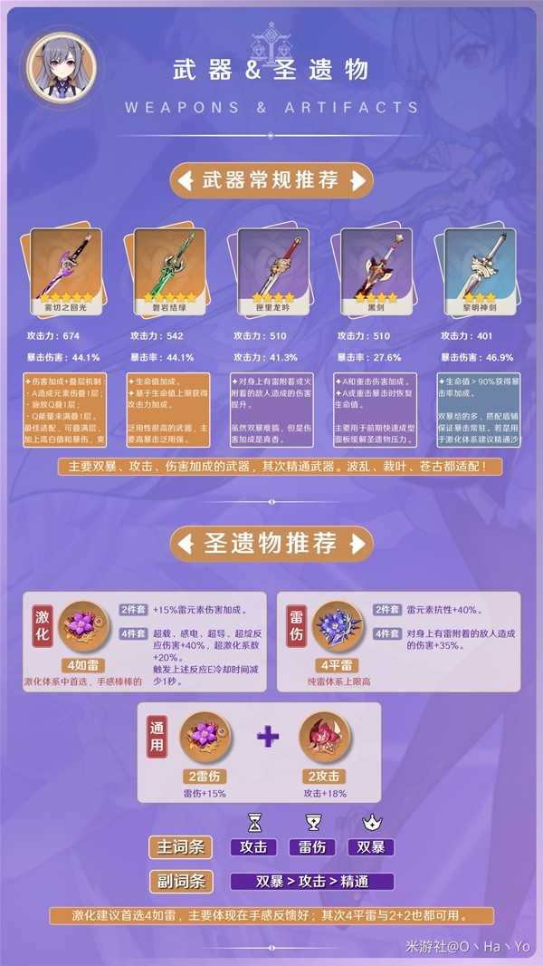 精通属性可以为超激化反应增加伤害收益,但由于刻晴自身没有精通转伤的机制,所以在攻击沙与精通沙的权衡下是优先去考虑攻击沙。除了裁叶萃光和黎明神剑这两把武器会优先建议精通沙,其余适配武器都是优先考虑攻击沙。