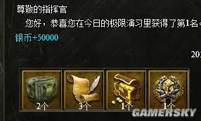 5、如果要打想到高分的话是要花些时间去考虑的,为什么叫极限演习呢,打的就是极限打到没办法打了为止才叫极限,船有换了一轮了,船的位置也从1号位换到8号位了,科技也调整了,哎,实在是打不过去了,那就真没办法了,那就真的到极限了。不要看别人打了800%而自己才打到680%去穷追猛打。因为有以下几点:一,极限演习根据你派遣的船的缘分船,也就是你自己号里面的船跟你派遣船的关系;二,战术高低;三,舰船的等级高低,比如你的阵营里有企业号而你自己也拿到了企业号,1级跟80级差距不用我多说了,这些等级跟你打极限演习都是息息相关的,有些虽然自己不用的船如果你打极限演习的是需要经常用到的话,建议还是把等级升稍微高点,太高就浪费训练卷轴不划算咯;四,旗舰等级高低,旗舰高的加成就高,你没别人高肯定比别人打的低了。极限演习是有奖励的,第一名的奖励是什么呢,1个SS舰船自选箱,1个200演习勋章,2个S船图纸箱,3个战术委任状 ,5W银币,请参考下图: