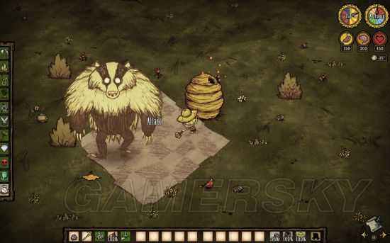 首先拉仇恨把熊大引到蜂王的位置,然后速度丢下若干食物,熊大就会被食物吸引以取消仇恨,马上锤子敲出女王,捡起食物或者a一下熊大,这时候2boss都会对你产生仇恨。