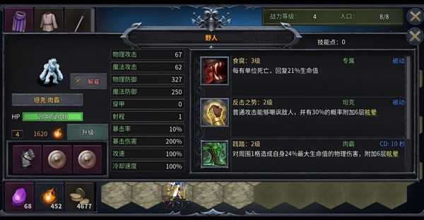 传奇生物也大部分出现在非人的招募地点,比如地牢的招募点可以获得各种动物,其中史莱姆无限分裂看起来很BUG,但巨怪食腐(每当有单位阵亡回血)又完克它,总得来说非人“传奇”生物都有比较特殊的技能——每种生物包含8个技能,然后每次升级获得2技能点同时roll出三个可学习技能,每个技能最高升到4级,也就是说养成其实有很丰富的选择自由度。