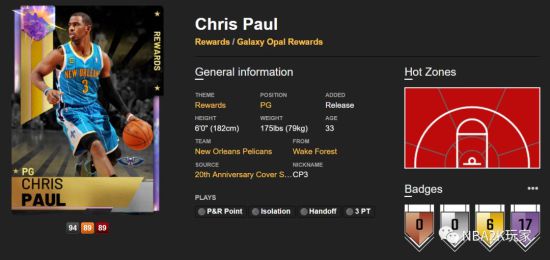 相信大家肯定不会忘记今年第一张周年系列银河奖励卡!他属于奥尔良黄蜂时期的巅峰三炮!完成20周年系列球员卡收集即可获得银河卡克里斯保罗,巅峰保罗属性如何呢?下面就为各位玩家带来《NBA2K19》银河卡克里斯保罗数据解析,一起来了解一下吧。