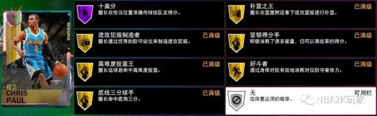 6+17,共计23枚的徽章组成!高达17枚名人堂徽章,实用徽章已经全部齐备,但这张卡有着8个空槽,不补感觉浪费了,挡拆投篮高手、挡拆高手、隔扣、追帽等等这些控卫本来用处不大的徽章可以填一填。