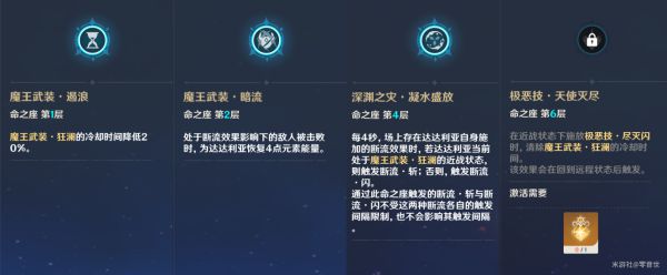 1命减少E技能20%冷却时间,对核爆流没什么用,对持续输出是有用的。但是到了6命以后1命就几乎没用了,这个设计我真的很不满意,希望未来可以改一下,让公子解锁6命以后更改1命效果,比如让公子主动结束E技能的时候增加一个伤害就不错。
