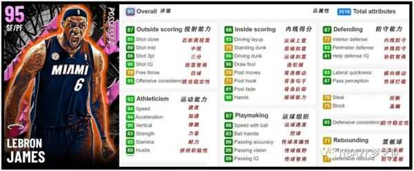 又来了一张热火詹,与之前钻卡相比他的关键属性有了一定提升:双速+1、三分+3、运速+3、抢断+10、盖帽+15、外防+8、控球+4,主要是防守增强很明显,同时控球的增加也让他更容易达到86的控球及格线。然后多出了3枚紫章和2枚金章,分别是:高难度投篮手、十美分、传球假动作大师、死亡缠绕和第一步大师,这几枚徽章质量还不错,但粉老詹可升级的徽章依然很少。