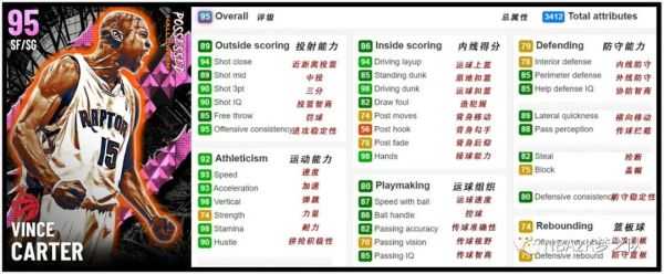这张粉钻卡特才是目前最值得关注的SG,他有着不输给麦迪哈登的投射能力,其扣篮更是直接毕业(双扣倾向100),同时他的速度和防守也要强于另外两位粉钻SG,但1米98的身高还是比不了麦迪。而且卡特在历代MT中都很难算是T1级别的球员,不过他在现阶段肯定是非常强的,当然价格也非常之高...