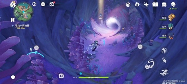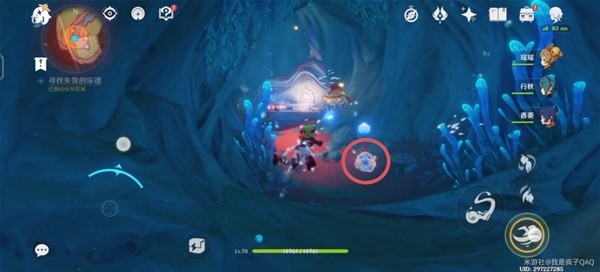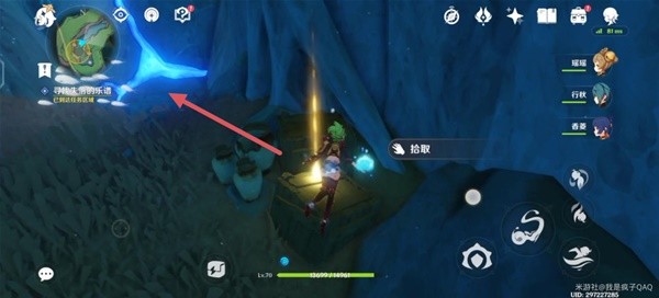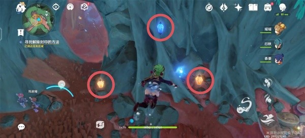 然后朝后游,对光点进行调查后,利用重甲蟹能力击碎石头