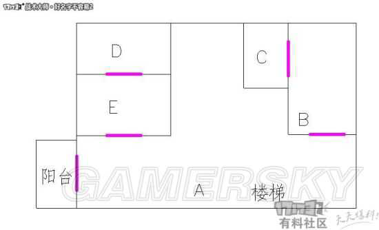 三层洋楼一层d处、e处的两处房间都有窗户,非常不适合玩家防守,可以直接放弃。