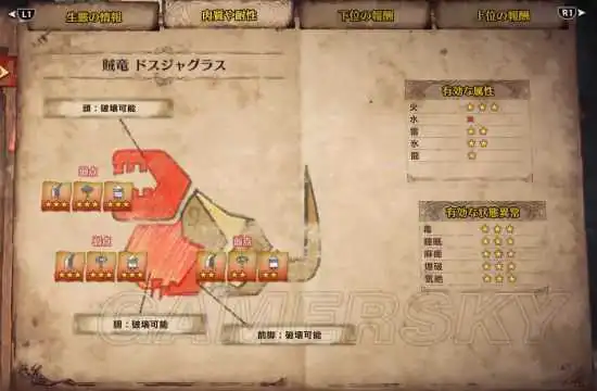贼龙部位弱点