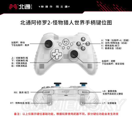 PC版《怪物猎人世界》北通阿修罗2手柄键位图。