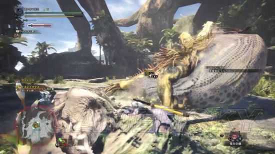 重复上述的侧面攻击后,当伤害积累到一定程度后就可以破坏贼龙的部位,这么一来它就会倒地。这个时候就可以按RT进行特殊攻击,并给太刀开刃。