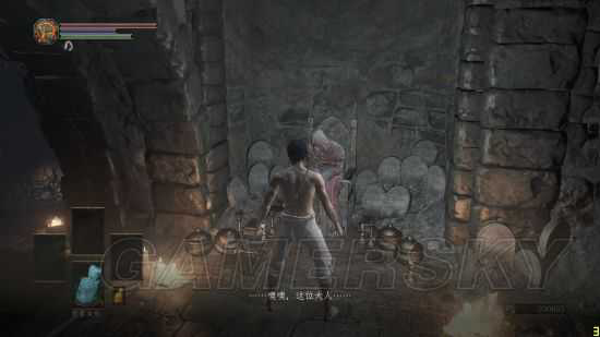 再回到,普通传火祭祀场(实在找不到合适的词形容了),和老婆婆对话,发现他好像以前见过玩家