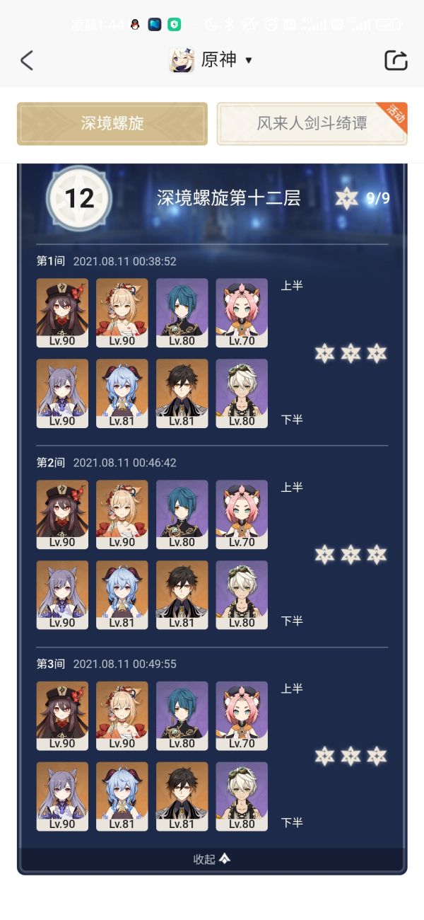 这是我昨晚尝试的满星,上半平均50秒,比我的胡行钟砂平均快15秒,阵容整体强度得到了明显的提升。