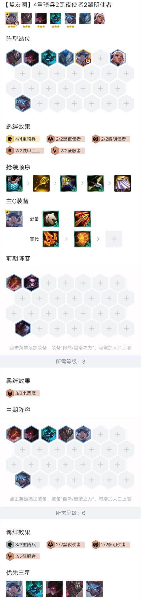 《云顶之弈》11.11版本可玩的阵容有很多,今天给大家带来一套比较容易吃分的阵容,请看“莫得感情”分享的《云顶之弈》11.11版本重骑兵锐雯上分阵容推荐,希望能够帮助到大家。