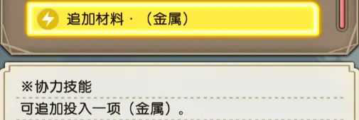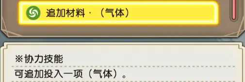 本文剩下的部分将把这5种触发协力技能后可以追加投入的素材统称为"可追加素材", 即, 燃料+金属+水+神秘之力+气体