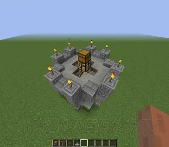 如果你觉得石砖半砖不好看也可以用铁砧。