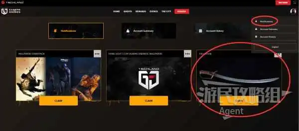 绑定了平台后,网站主页就能看到“骑兵刃”的领取提示。