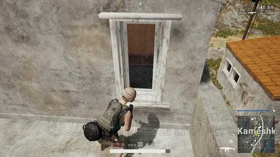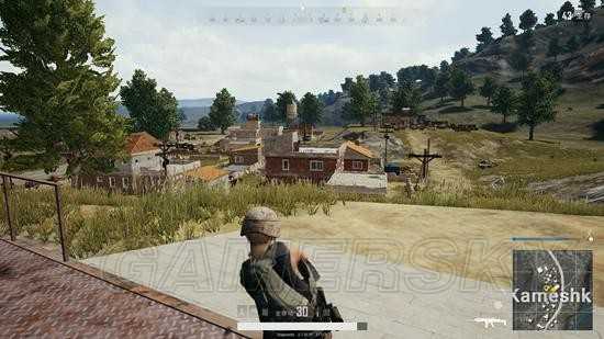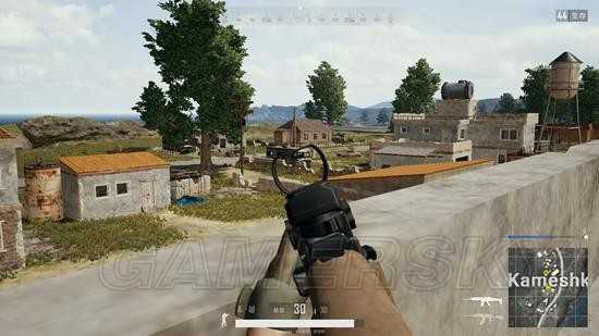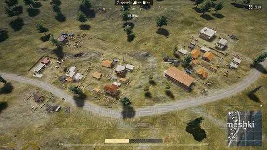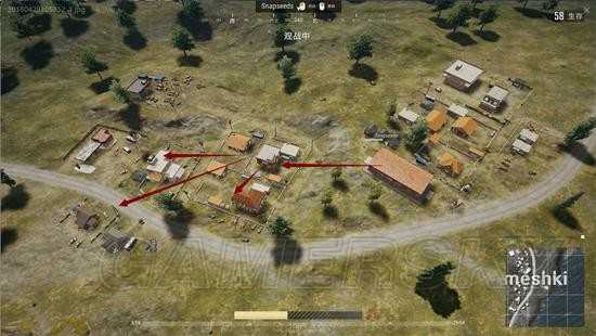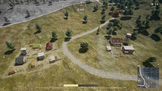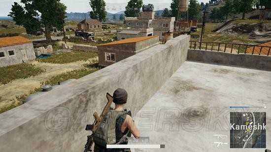 落在上面还有一个好处,就是地势好。我们在上面捡完枪,就可以拿枪直架下面房区,下面房区的人的行踪就完全暴露在我们的视线内了。