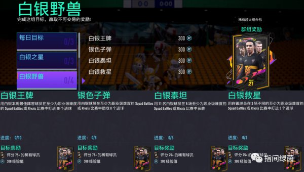 白银之星的任务其实不太建议大家做,耗时久而且仅有一张白银TOTW奖励,卡如果大家没有TOTW的白银卡可以做一次,因为白银野兽的任务要用到。